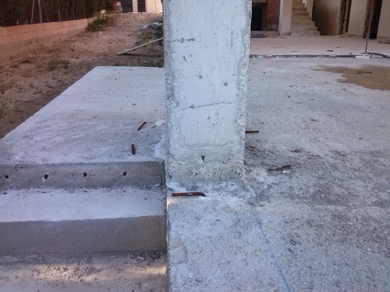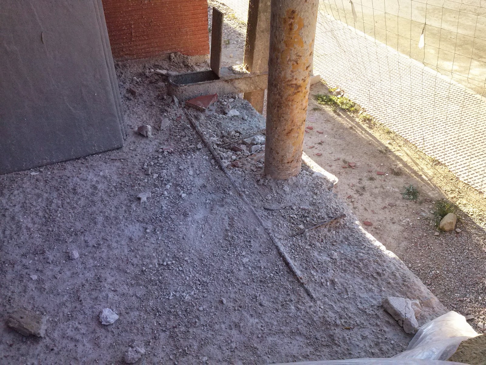 Además, en esta otra fotografía podemos observar diversos cortes en unas armaduras en el borde del forjado y encuentro de la escalera. Así como armaduras dobladas alrededor del pilar.
