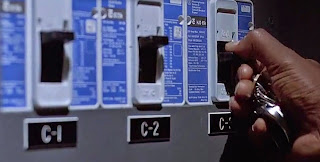 Durante la película Nedry, un programador, anula el sistema de seguridad del parque dejando sin protección a la mayoría de instalaciones. Es necesario reiniciar los sistemas para que todo vuelva a funcionar correctamente.