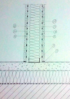 Detalle tabique de cartón-yeso revestido con panel "Viroc" (sección vertical)