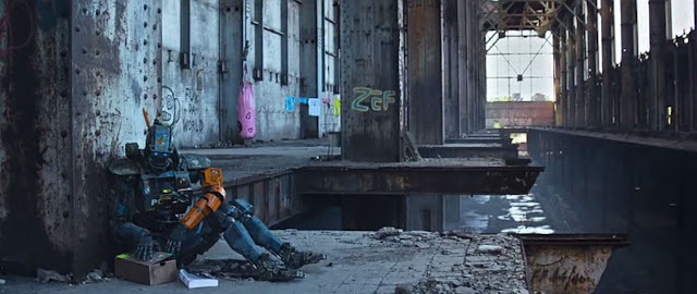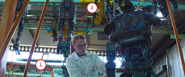 Chappie es adoptado por un grupo de delincuentes y traficantes. El escondite de éstos es una vieja fábrica abandonada en la que podemos ver multitud de detalles constructivos, sobre todo en cuanto a uniones metálicas.
