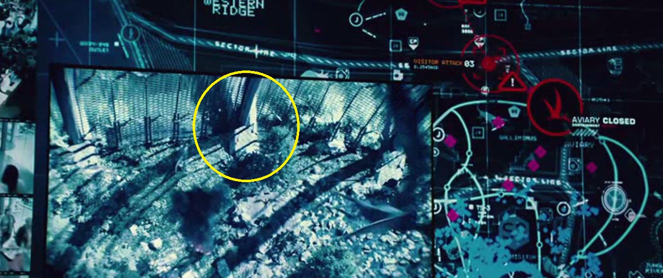 En la siguiente captura el Indominus rex destroza el hormigón que conforma parte del muro y de la puerta antes mencionada: